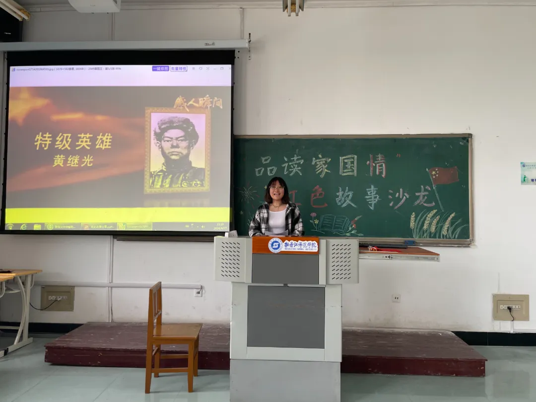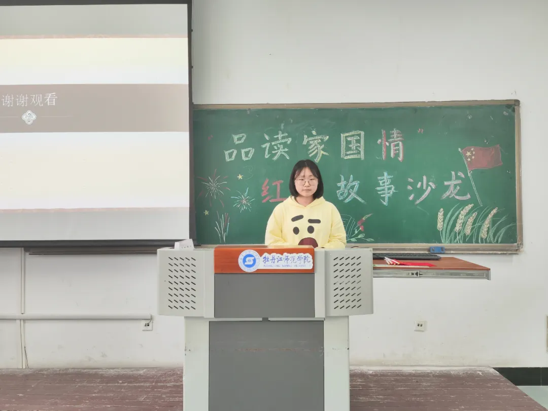 2022级、2023级的同学们向大家分享了红色家国故事,讲述了长征途中的艰难困苦,描绘了抗日战争中的英勇牺牲的场面。每一个故事都饱含深情,让人动容。付珩、关昕然、池梦婷三位同学朗诵的《我爱你中国》,让在座的全体同学都重温了祖国的光辉历史,感受到了红色基因的伟大与厚重。