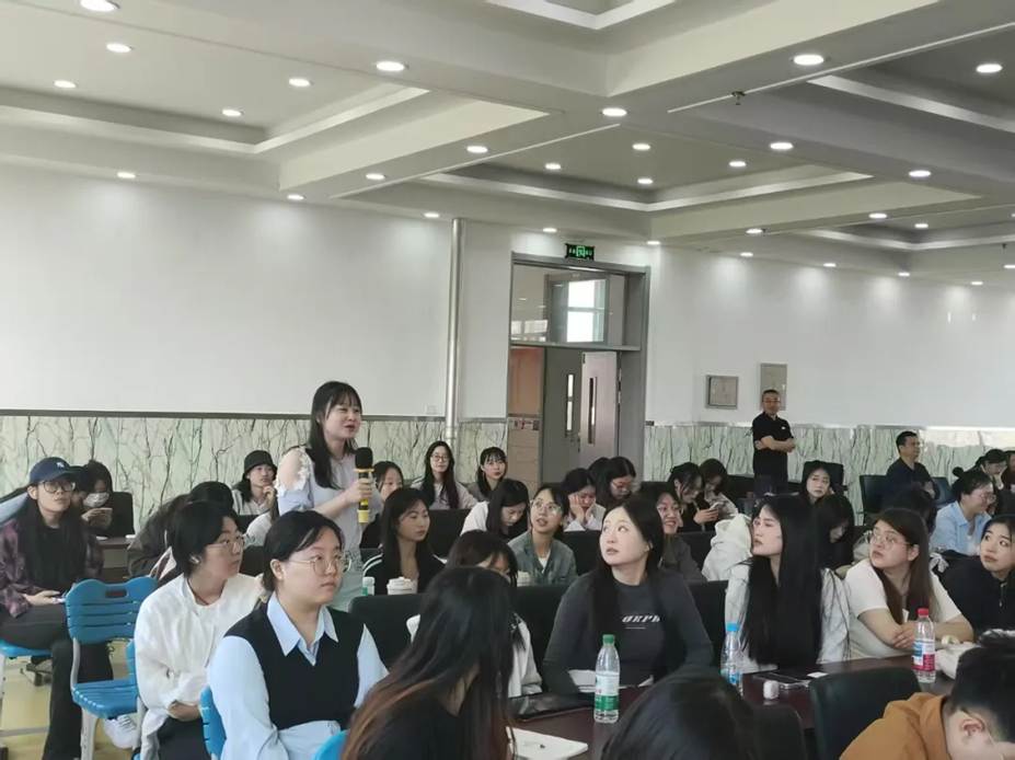 在授课过程中,董老师紧抓潇湘馆里的生命诗学,特别指出潇湘馆的青苔石阶,是曹雪芹精心铺设的隐喻地毯。“苔痕上阶绿”的幽寂中,鹦鹉学舌反衬出空谷足音般的孤独。这里的每片竹叶都在书写“寒塘渡鹤影”的意境,每滴晨露都映照着“眼空蓄泪泪空垂”的宿命。曹雪芹以“水做的骨肉”颠覆了传统文学对女性的物化书写,董老师以别样的角度切入,让黛玉的形象经久不衰。董老师还特别提出黛玉与宝玉那些未送出的旧帕、未说尽的誓言,在“你放心”三个字中完成了比“我爱你”更震撼的灵魂契约。当董老师追问“你来这世间干什么?”时,现场众多同学都纷纷畅谈了自己的想法。