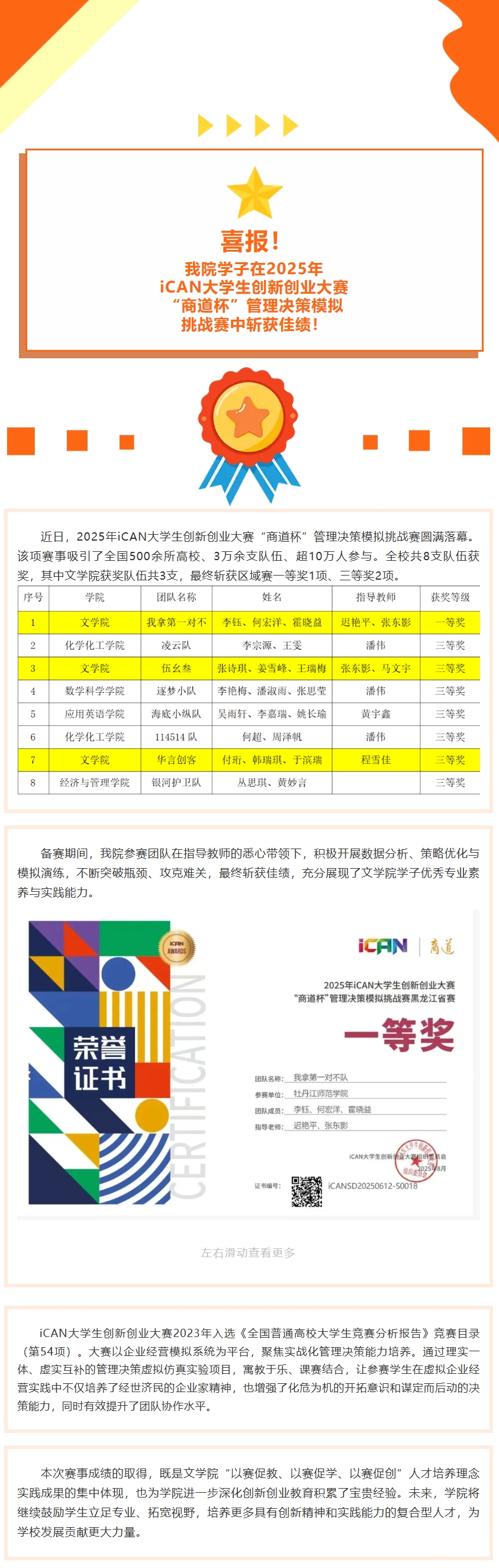 喜报!我院学子在2025年iCAN大学生创新创业大赛“商道杯”管理决策模拟挑战赛中斩获佳绩!